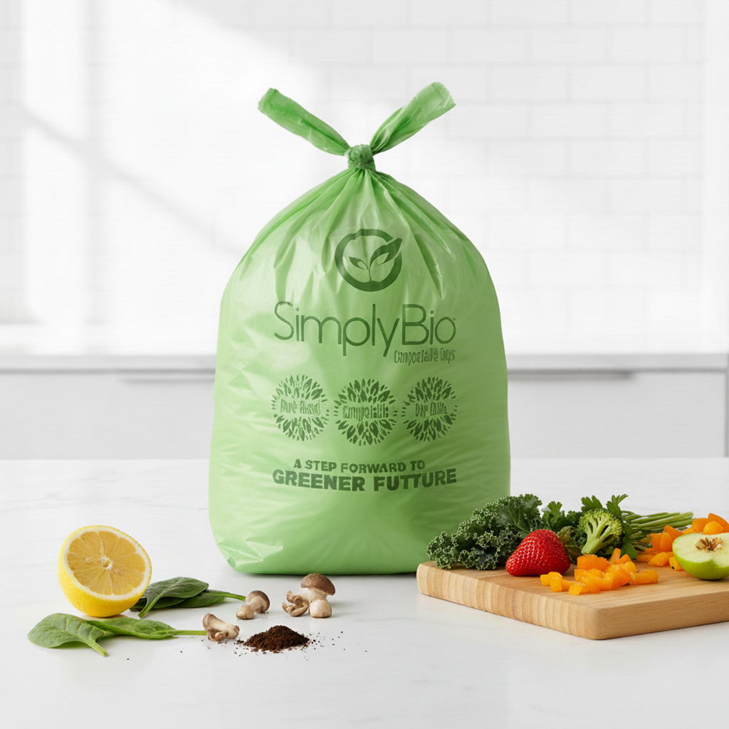 Upgrade to Simply Bio's sustainable Home Compostable Food Scrap Bags! Our heavy-duty 3-gallon bags offer strength and durability with handle-tie or drawstring closures. Ideal for inedible leftover or food scrap disposal, make the eco-friendly choice with Simply Bio. Great for lining 3-4 gallon compost bins.