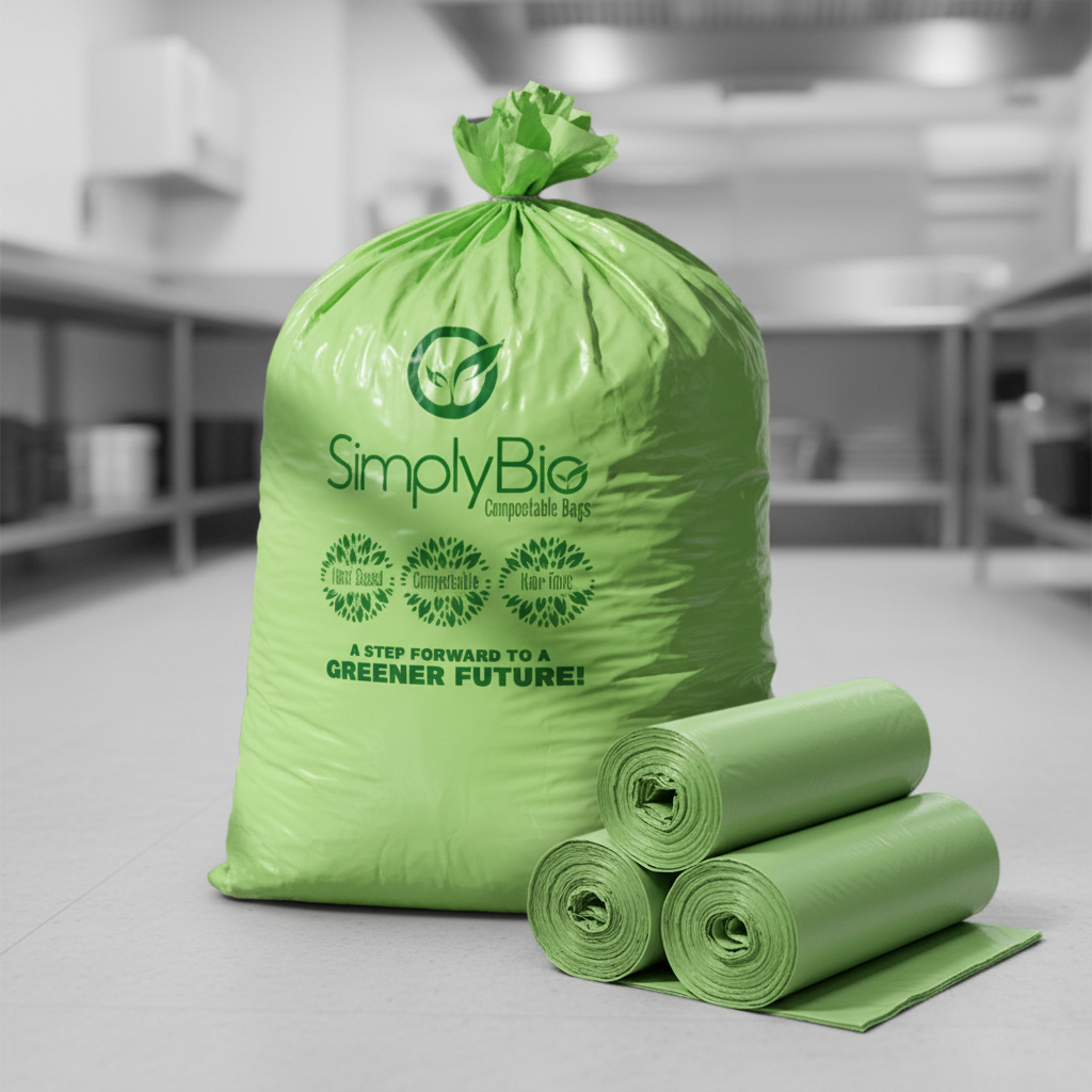 Upgrade to Simply Bio's sustainable Home Compostable Industrial Liners! Our heavy-duty 60-64 gallon bags offer strength and durability with flat top closures. Ideal for disposing food scraps, leaves, garden clippings, and large organic waste, make the eco-friendly choice with Simply Bio. Great for lining 60-64 gallon garbage bins.