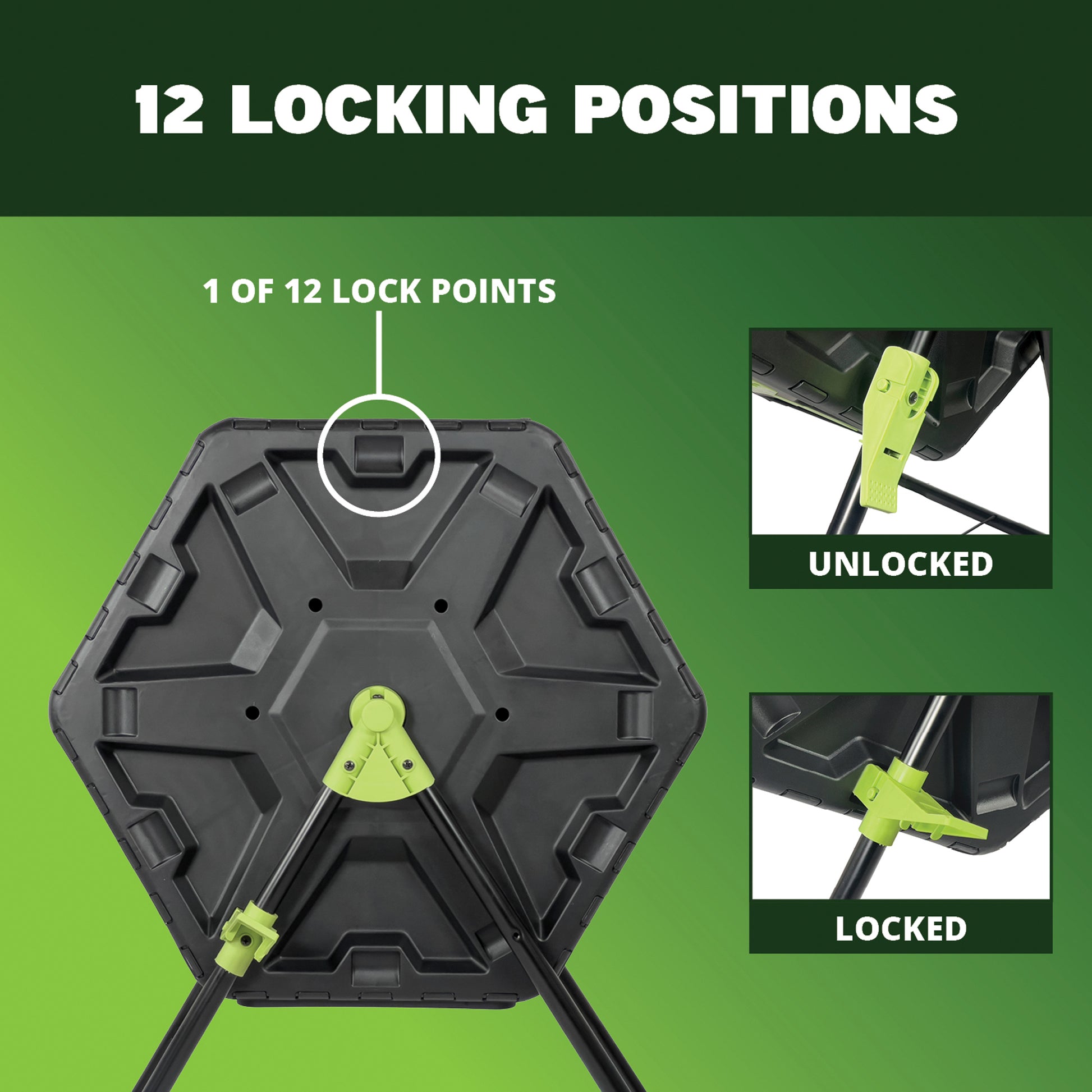 - Locking Mechanism with 12 Lock Positions